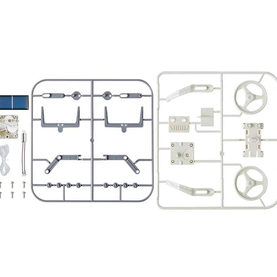 - Incluye: 2 ganchos, 1 tapa de la caja de cambio, 1 placa de la cara, 1 placa de la base, 2 ruedas, 1 soporte para el panel solar, 2 enlaces para el brazo, 2 levas, 2 pies, 2 piernas, 8 conectores, 1 caja de cambios solar, 1 motor con cables, 1 panel solar, 1 sedal y tornillos.
