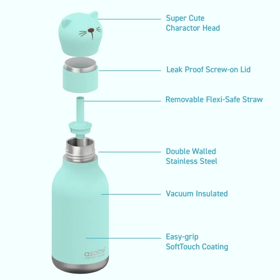 Las botellas Bestie aportan un toque de adorable diversión a tu rutina diaria. Con sus cabezas de silicona coleccionables, estas botellas agregan carácter a cada sorbo.