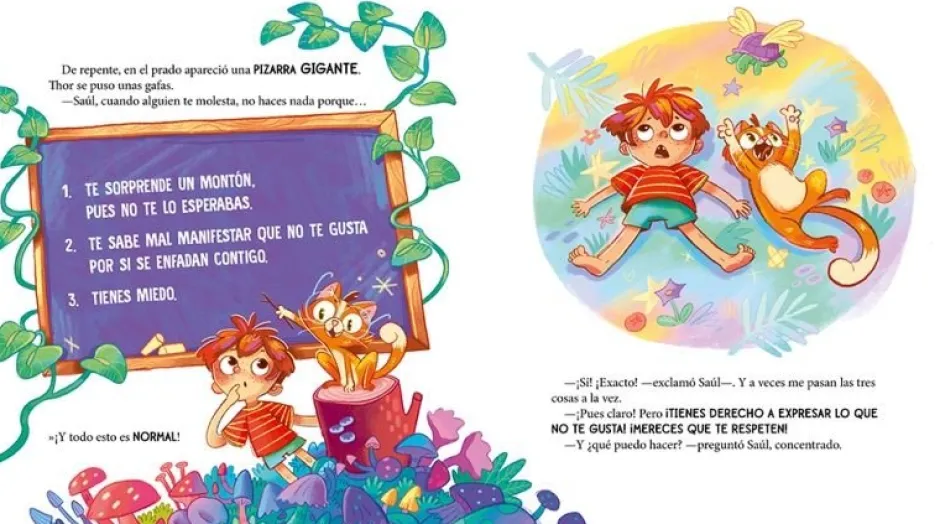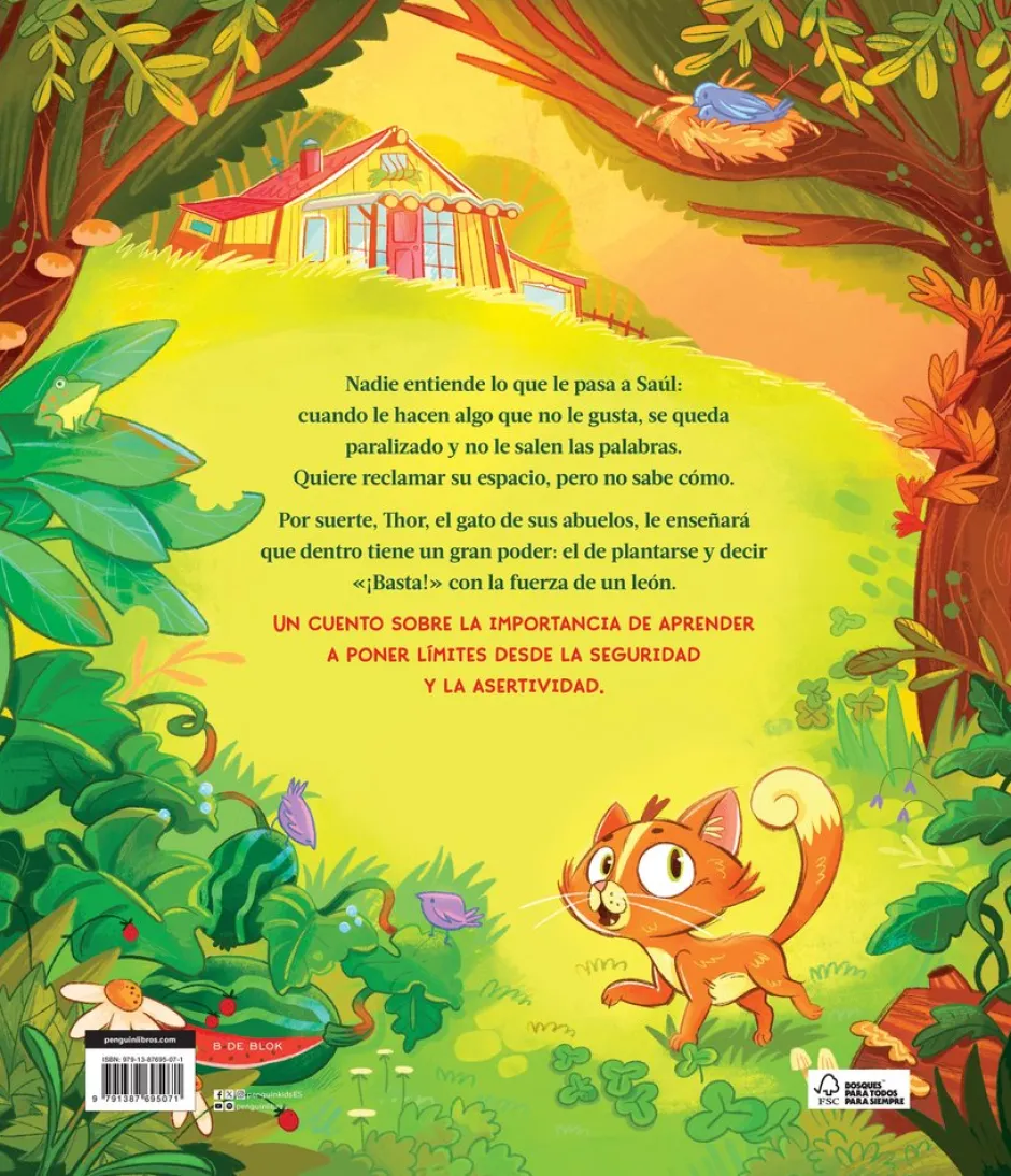 Después de grandes éxitos como El hilo invisible, Sensibles e Infinito. Ida y vuelta, llega el nuevo álbum ilustrado de Míriam Tirado: un cuento para que los más pequeños aprendan a poner límites, ideal para pequeños y no tan pequeños. A Saúl le pasa algo que nadie entiende. Cuando algo no le gusta, se queda paralizado y no le salen las palabras. Quiere reclamar su espacio, pero no sabe cómo. Por suerte, Thor, el gato de sus abuelos, le enseñará que dentro tiene un gran poder: el poder de poner límites. Porque todos podemos aprender a decir ?basta? y comunicar aquello que nos gusta y aquello que no. Con este precioso álbum ilustrado, Míriam Tirado, la autora referente de la crianza consciente nos habla con sensibilidad de la importancia de poner límites desde el respeto y la asertividad. ¿Por qué es importante este cuento?