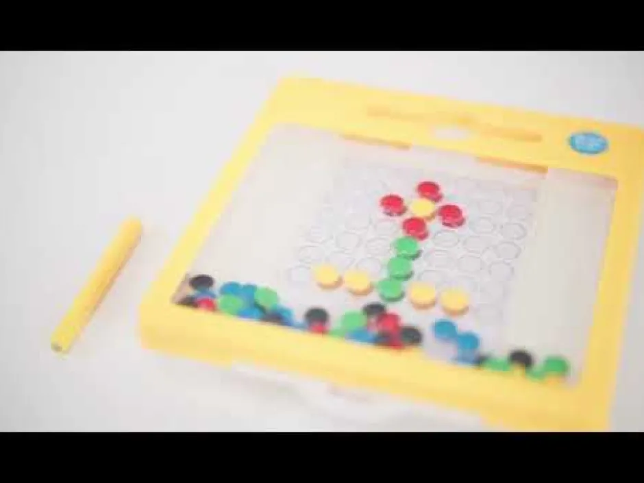 Ubica el lápiz magnético sobre la cubierta de plástico transparente, selecciona la ficha que quieras mover y deslízala para crear tus propios diseños o los patrones propuestos en las tarjetas.