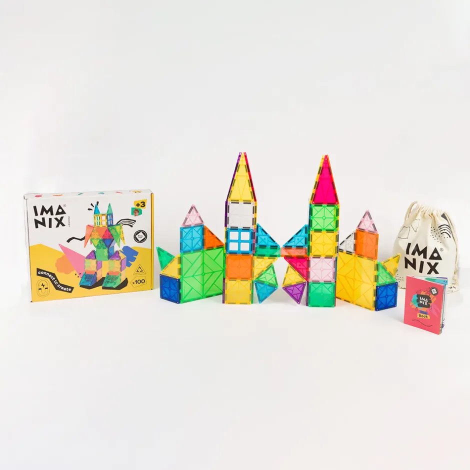 Imanix 100 piezas es el juego de construcciones magnéticas para niños y niñas definitivo y unos de los juguetes imprescindibles de Bizcocho de Yogur.
