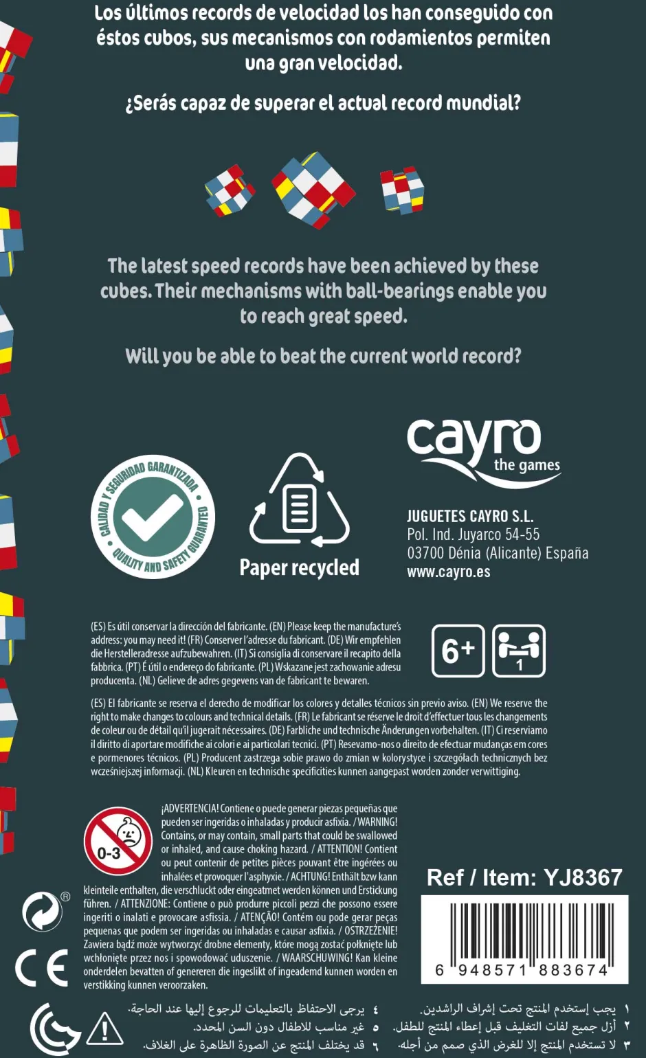 Cubo 4×4 en caja de cartón con ventana.