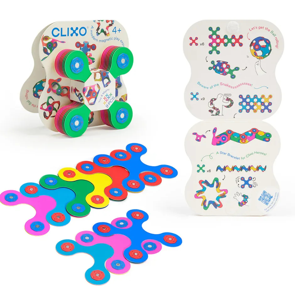 Contiene 9 piezas de la característica forma Quad de CLIXO para realizar más de 100 ocurrentes creaciones magnéticas.