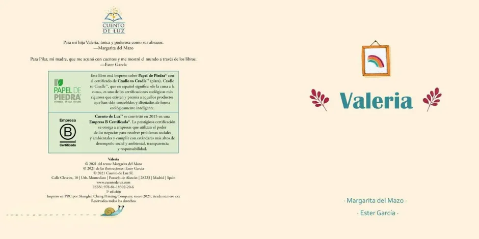 Valeria siempre caminaba mirando al suelo ¡y por eso nunca tropezaba! Conocía a todos sus compañeros de clase no por sus caras… ¡sino por sus zapatos! Pero cuando menos se lo espera, su inseparable sombrero echa a volar, y entonces Valeria se ve obligada a echar la vista hacia arriba y contemplar todo lo que se había perdido hasta ese momento.