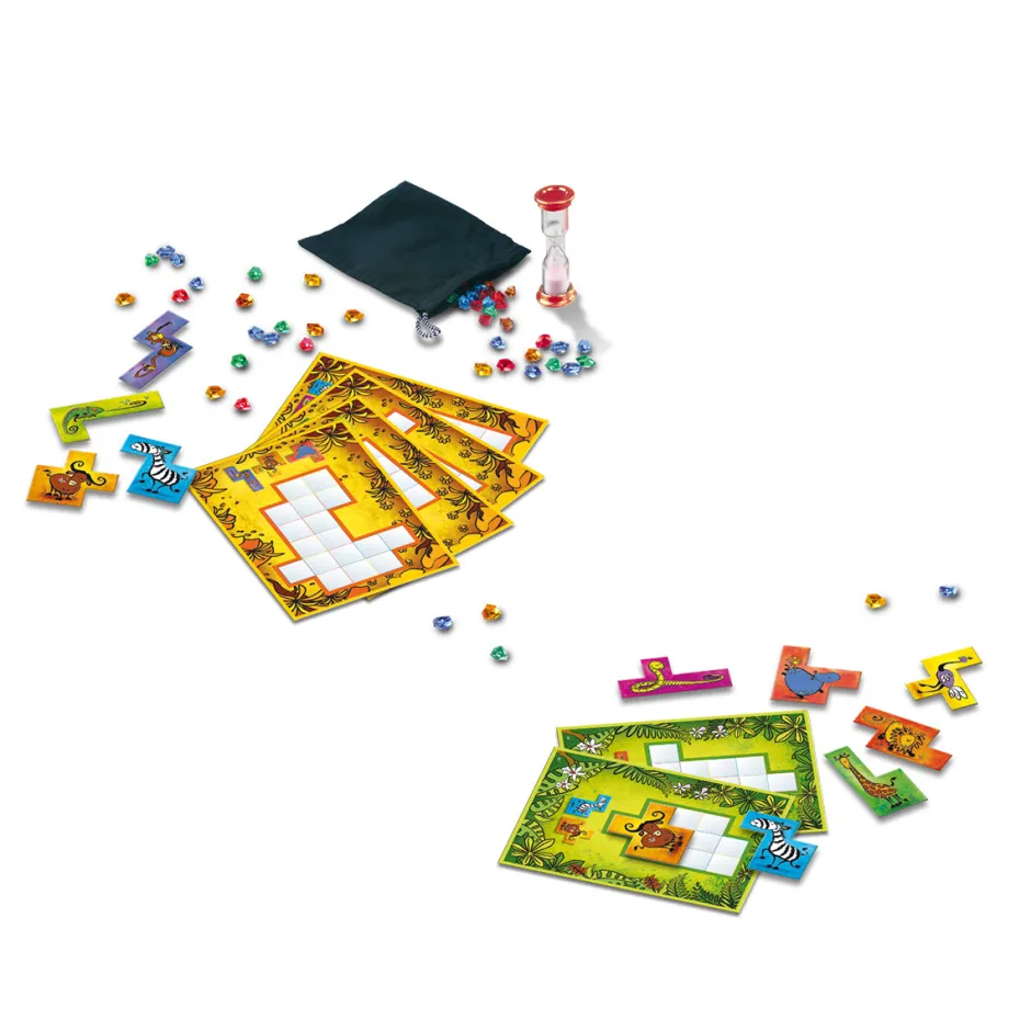 Esta versión infantil del famoso juego Ubongo es una herramienta perfecta para el aprendizaje lúdico y el desarrollo de la motricidad fina.