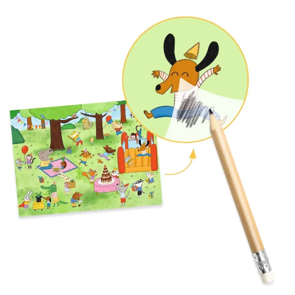 Con un lápiz, frota las imágenes para posicionarlas donde quiera.