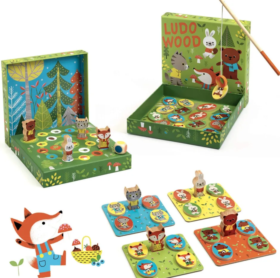 Una hermosa caja con cuatro juegos: pesca imantada, bingo, memoria y recorrido. LudoWood es la caja ideal para presentar cuatro juegos clásicos recreados por Djeco a los niños a partir de los 2 años.