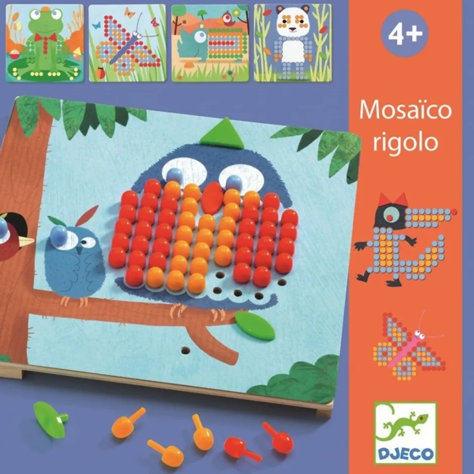 Un juego de mosaico original para crear cuadros fabulosos completando los 8 dibujos con chinchetas de colores.