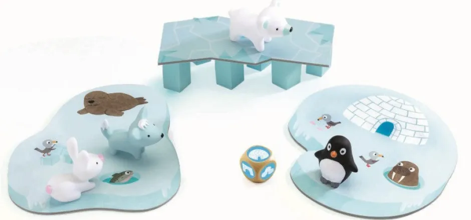 En el banco de hielo, 4 animalitos tratan de llegar a su iglú. Tendrán que hacerlo con precaución ya que el puente de hielo amenaza con hundirse. Un juego que requiere cooperación para aprender a jugar y ganar todos juntos.