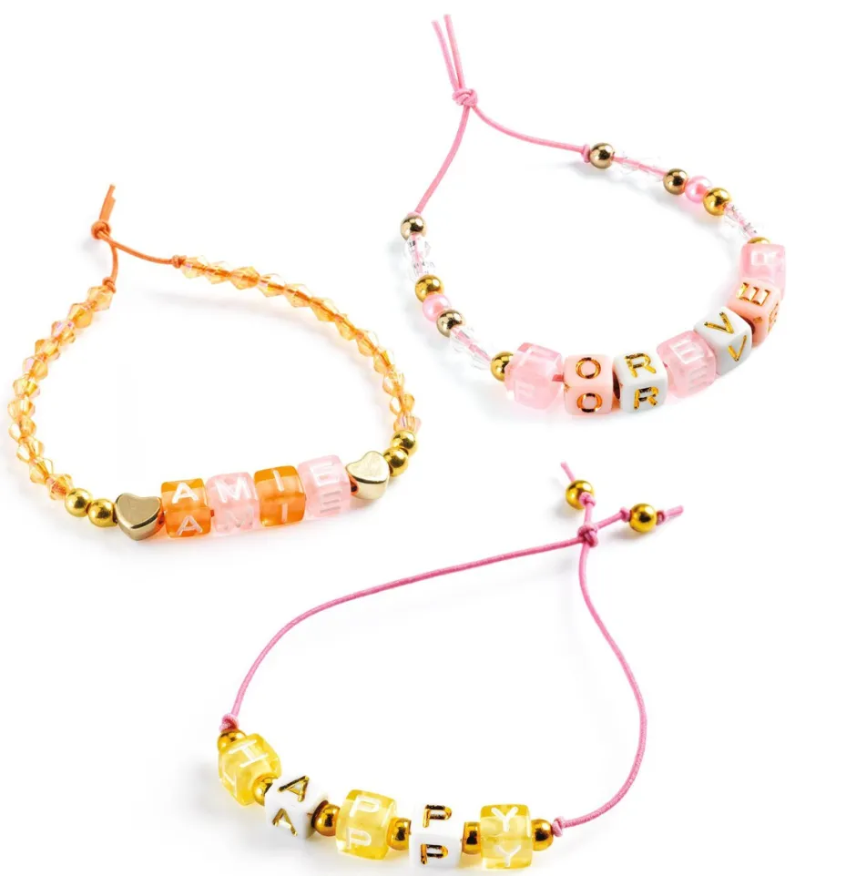 Una caja muy completa que contiene 1.000 cuentas con letras y perlas de diferentes colores para crear bonitas pulseras con nombres o mensajes. Un surtido de perlas de colores y plateadas, bien pensadas para un resultado siempre armonioso.
