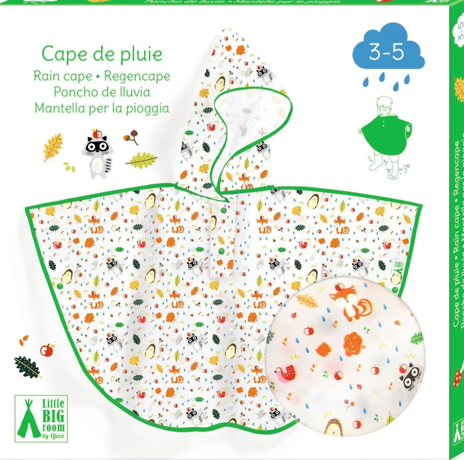 La capa impermeable de Djeco es el accesorio ideal para proteger a tu hijo de la lluvia y el viento. Fabricada con materiales de alta calidad, el poncho es ligero y cómodo, pero resistente y duradero para uso a largo plazo.