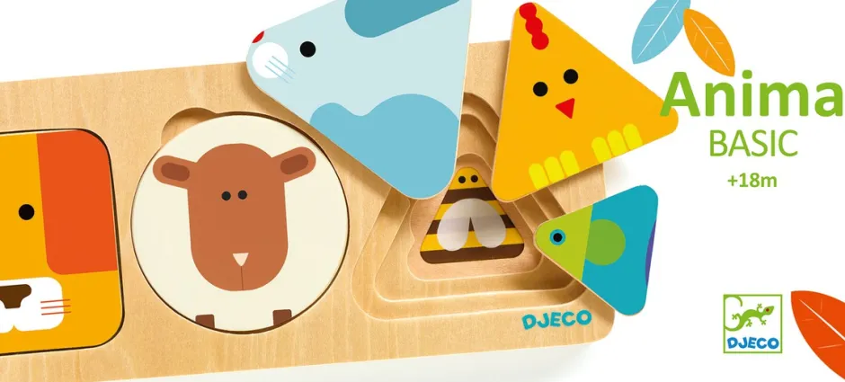Un primer puzle de madera en 3 niveles para que los más pequeños descubran las formas y los tamaños, a partir de los 12 meses. El niño se divierte colocando las piezas en el lugar correspondiente, en función de su forma y su tamaño, en 3 niveles. Las piezas representan animales con un diseño simple y colorido.