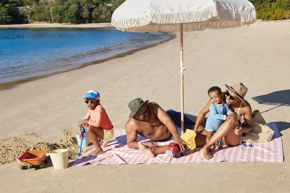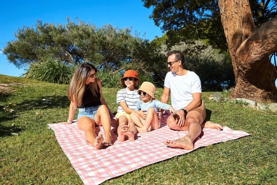 Espacio para ti, amigos y tus bocadillos favoritos al aire libre. Extra grande, pero ligera y compacta, con un agujero para una sombrilla. Agregue una capa inferior impermeable y preocuparse por la hierba húmeda es cosa del pasado.