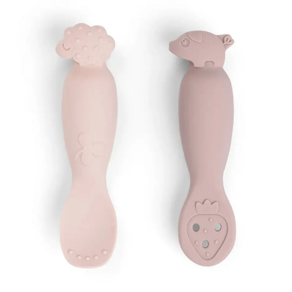 Set de dos cucharas de aprendizaje de silicona para cuando tu pequeño quiera empezar a comer solito.