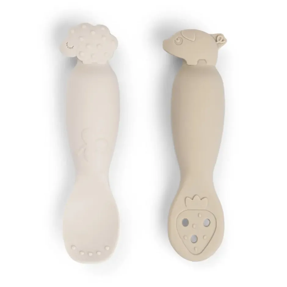 Set de dos cucharas de aprendizaje de silicona para cuando tu pequeño quiera empezar a comer solito.