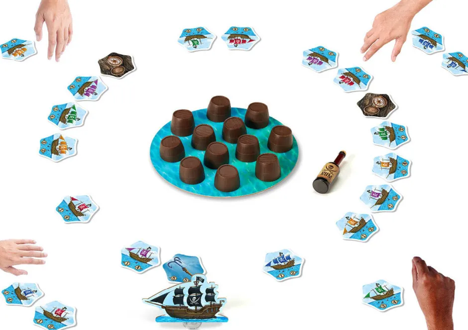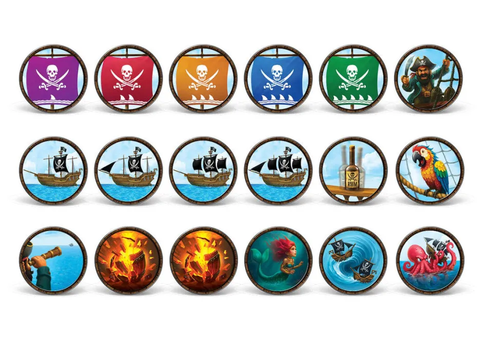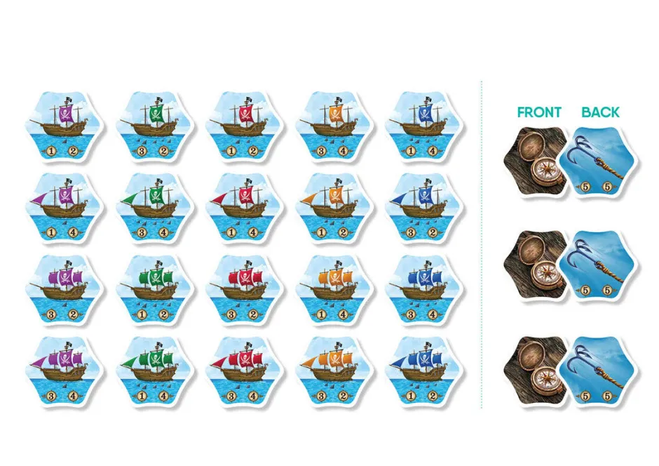 CONTENIDO: 72 cartas de juego, 12 cartas de tiburón, 6 fichas de animales marinos, 1 tiburón, 1 instrucciones
