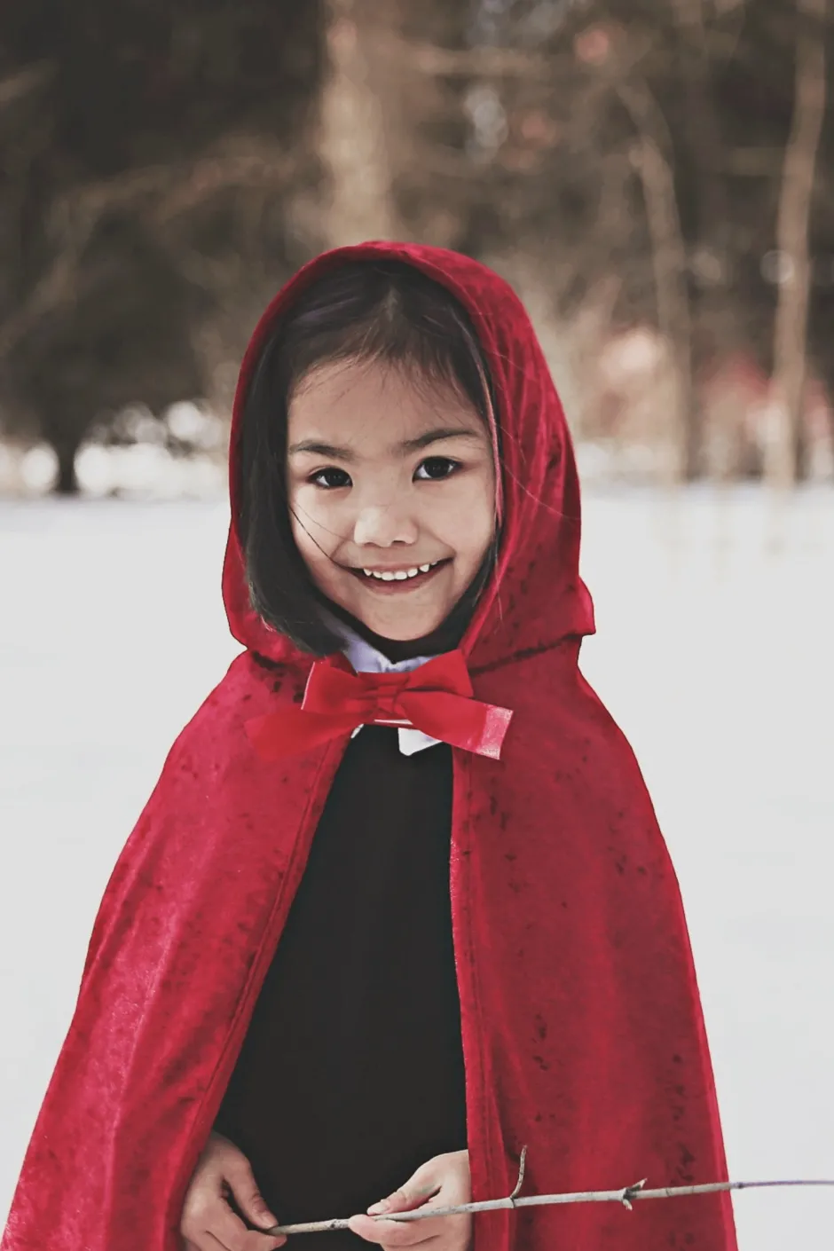 Una preciosa capa de terciopelo rojo para jugar a ser Caperucita Roja y vivir increíbles aventuras de fantasía. El tejido y la caída de la capa es alucinante, ¡le va a encantar!