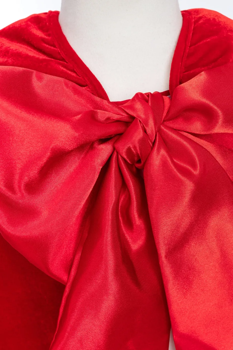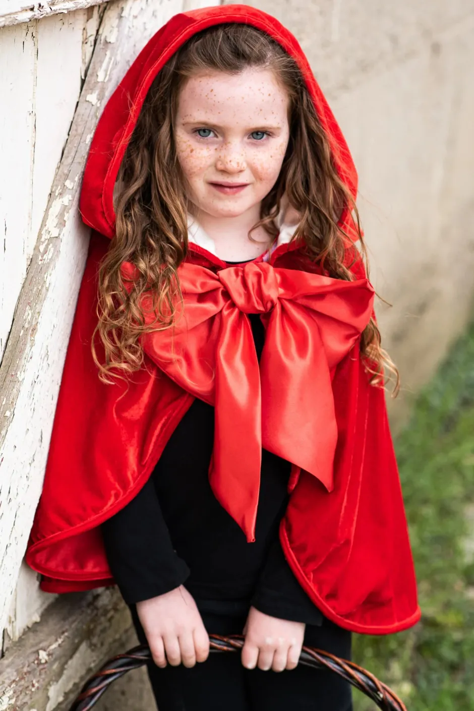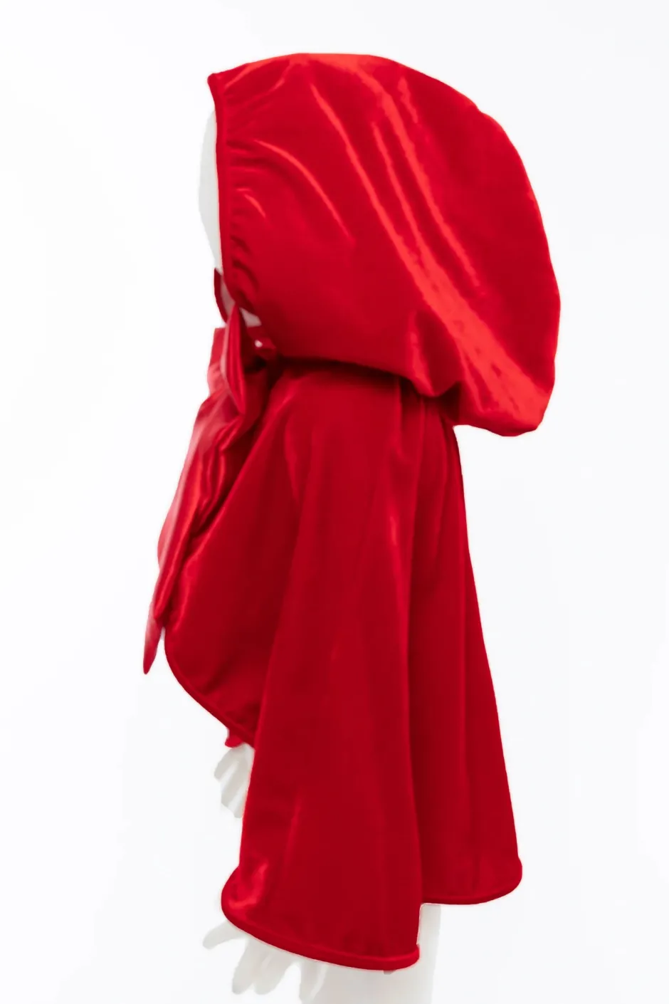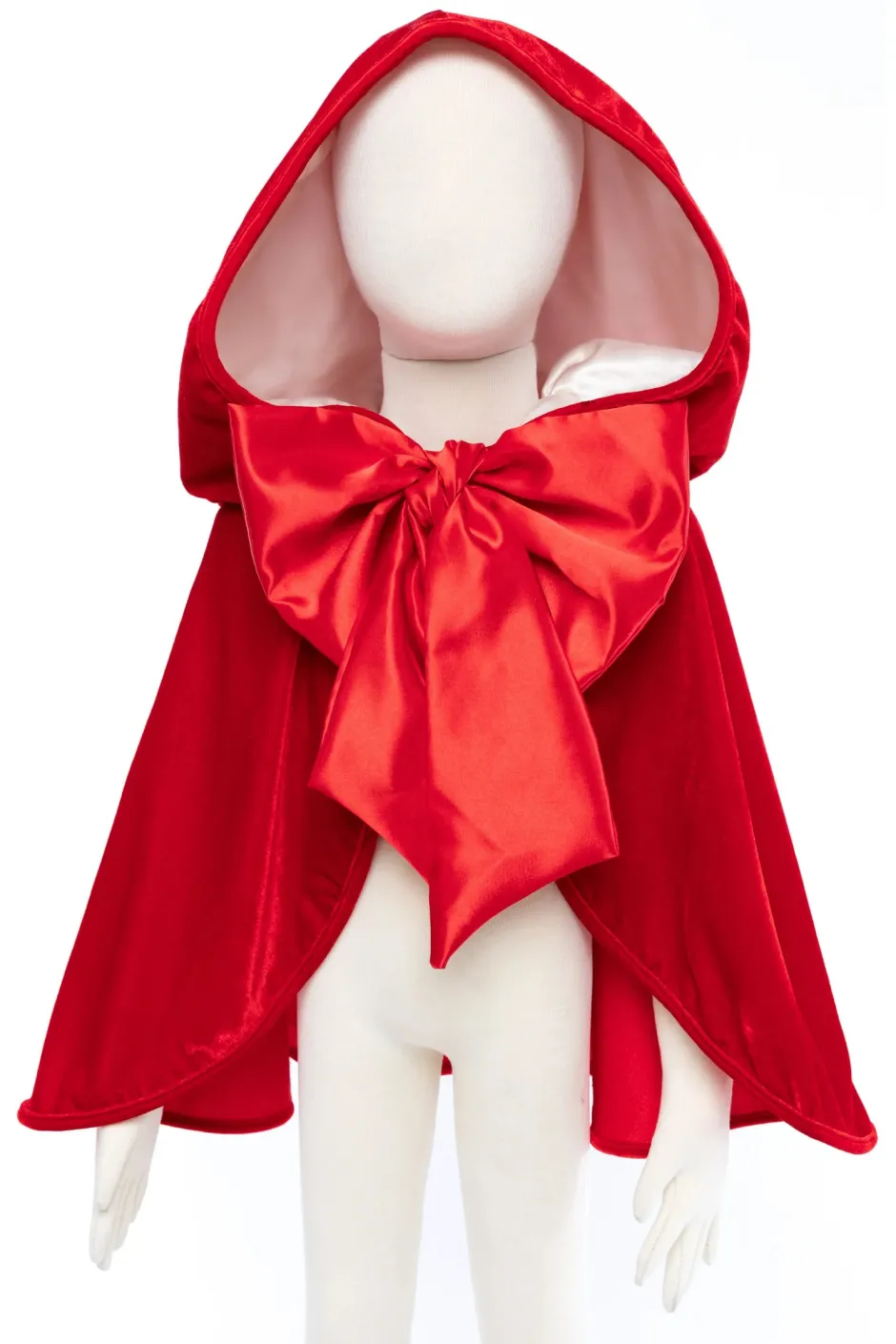 Esta capa inspirada en Caperucita Roja está confeccionada en terciopelo elástico en 2 direcciones y capucha forrada con satén crema . El lazo de satén de gran tamaño es extraíble para facilitar el lavado.