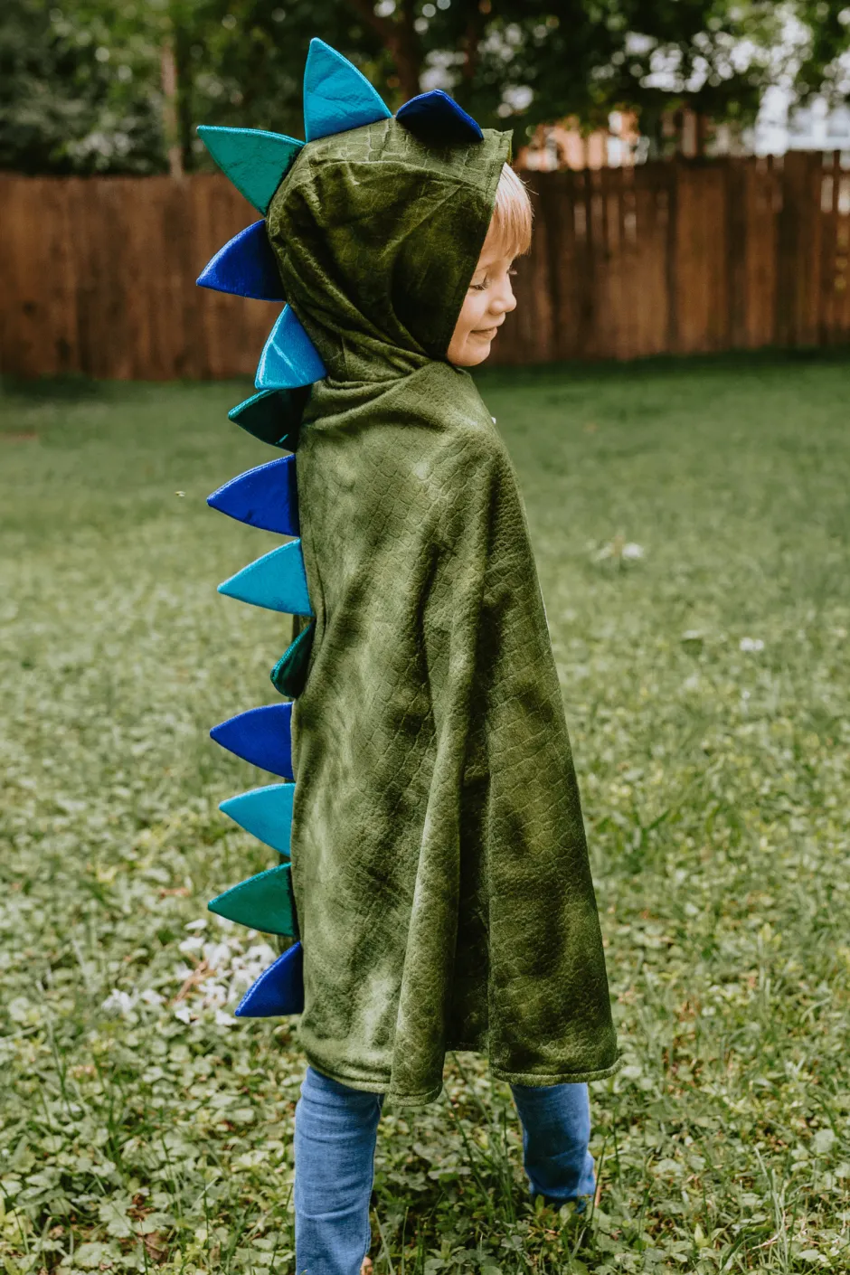 Esta fabulosa capa de dragón seguramente inspirará muchas aventuras de fuego con una capa de terciopelo texturizado con escamas y garras rellenas. Esta capa de dragón está hecha de suave terciopelo triturado que tiene varios tonos de verde para lograr el look de dragón perfecto. La tela incluso está diseñada con escamas, por lo que el efecto lo convierte en una gran capa de dragón. Los picos están forrados con espuma y diseñados para pararse solos. El cierre de velcro en el cuello hace que esta capa sea fácil de poner y quitar.