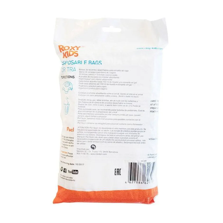 Interior absorbente a prueba de fugas para el WC (orinal) portátil. Cada bolsa absorbe hasta 150 ml de líquido.