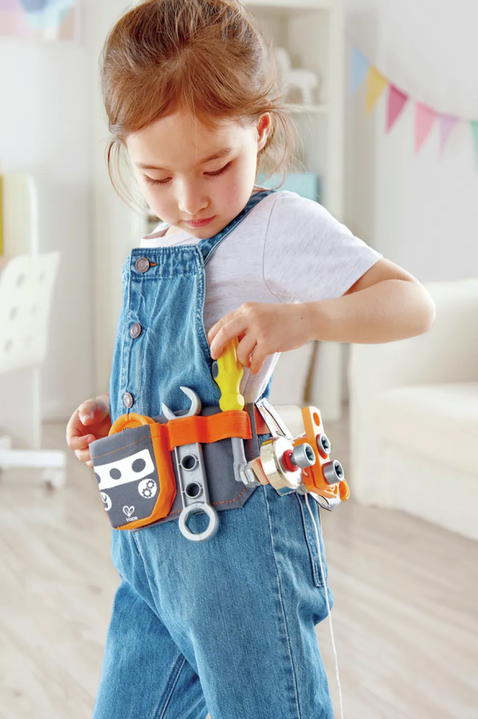 ¡Todo inventor debe tener sus herramientas a mano! Con sus bolsillos para herramientas y piezas, construye tus experimentos directamente en el cinturón.