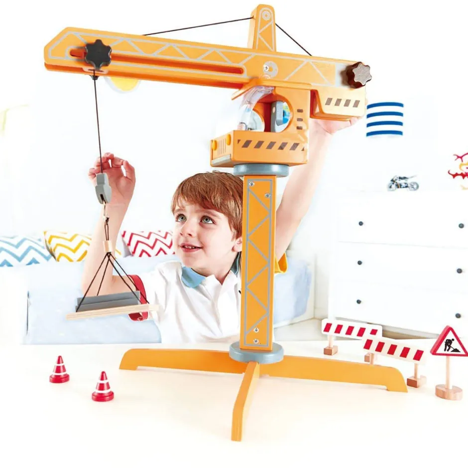 El futuro o futura constructores ponen a trabajar su imaginación mientras planifica una obra con su juego de grúa. De los juguetes más amortizados por los bizcochitos 🙂