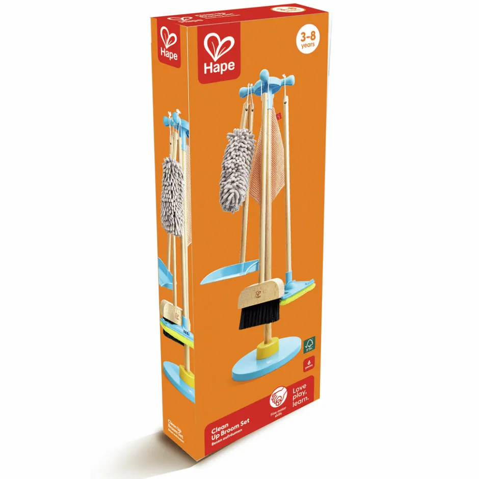 Aprende a mantener las cosas limpias y ordenadas con este juego de limpieza. Con una escoba, una mopa, un recogedor, un plumero, una bayeta e incluso un soporte para almacenar el equipo, tendrás todo lo necesario para que tu casa luzca impecable.