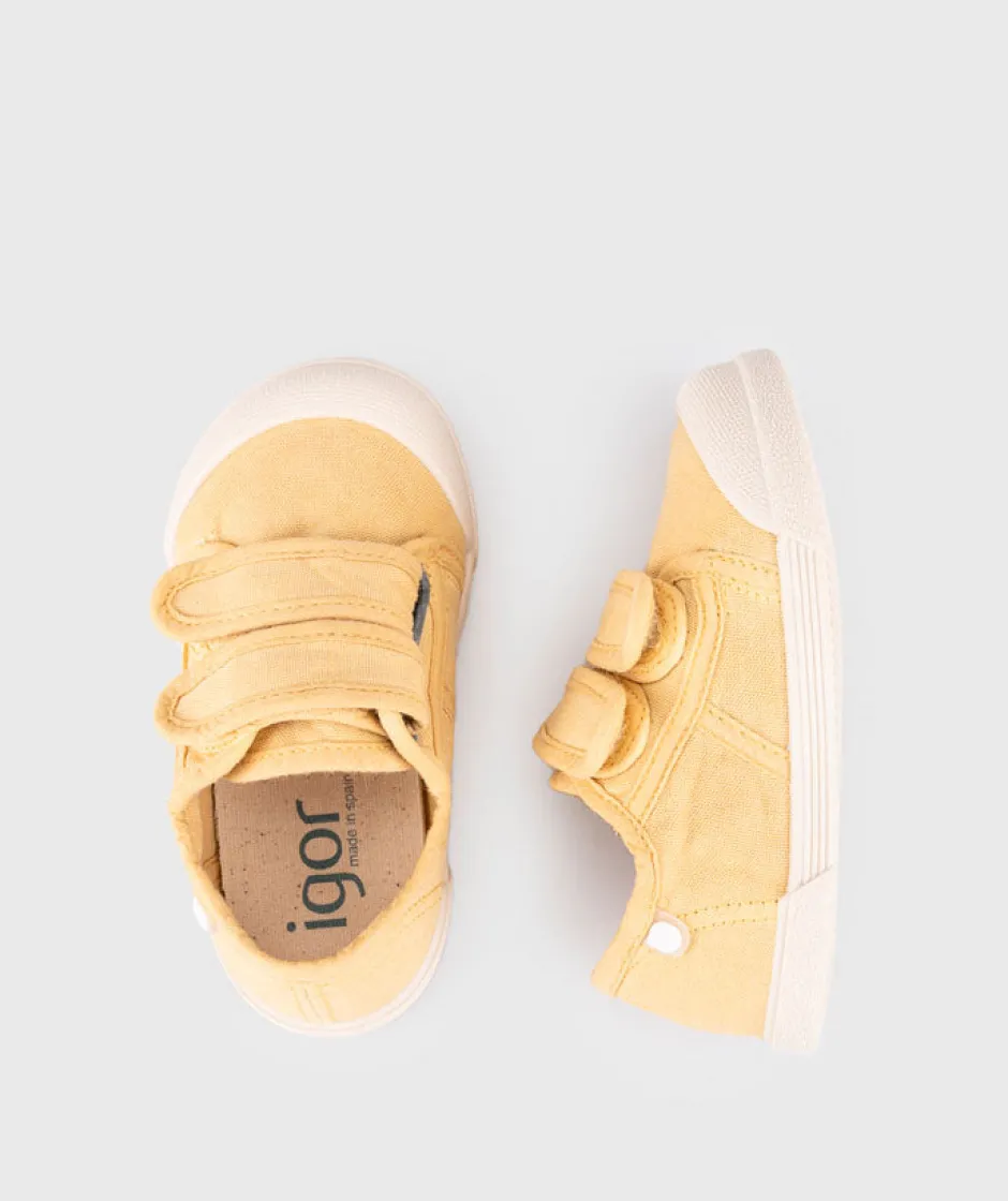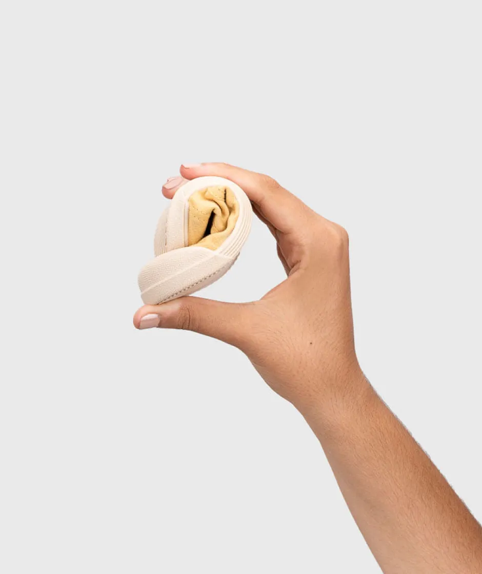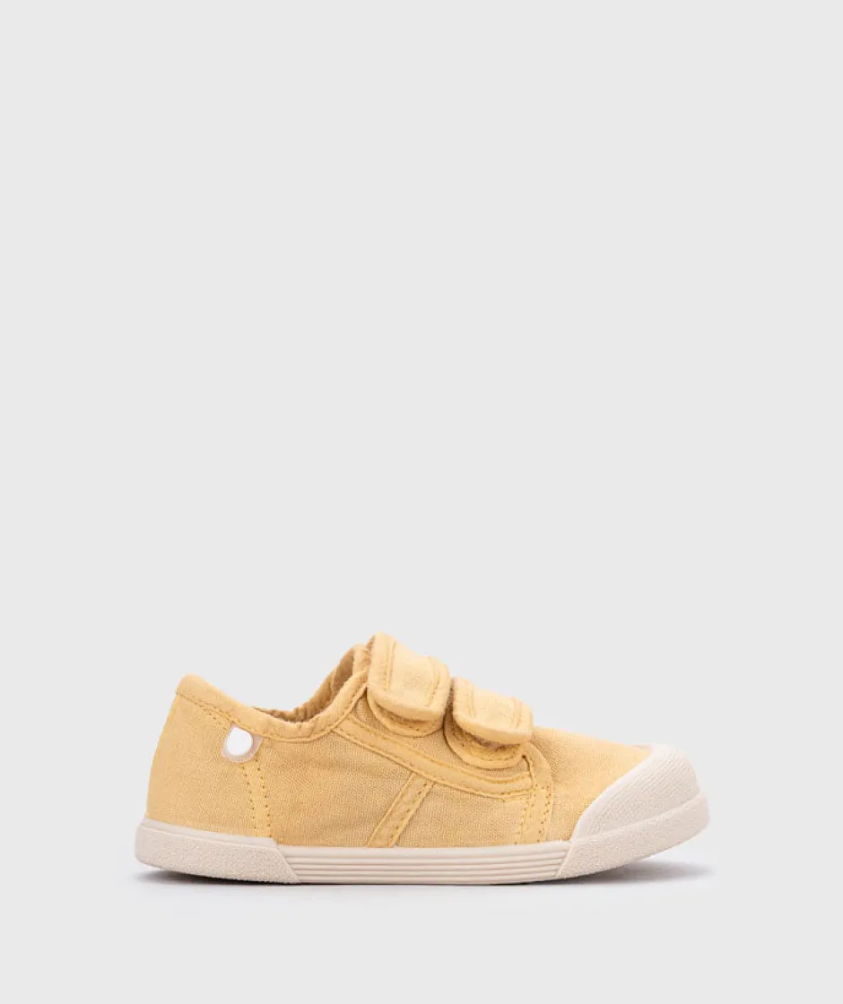 Zapatilla de lona con doble cierre adherente 100% algodón, de concepto barefoot, cero drop, flexible, blandita y con plantilla extraíble.