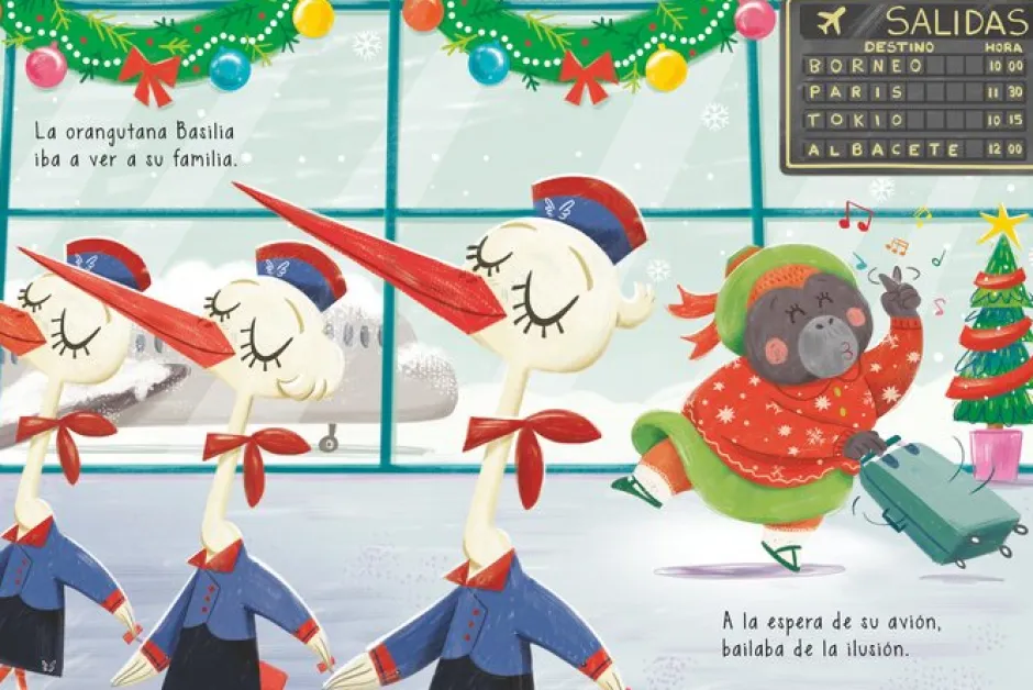 La orangutana Basilia iba a ver a su familia, llena de felicidad, porque ya era Navidad.