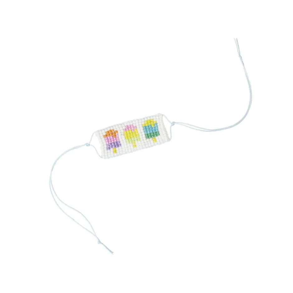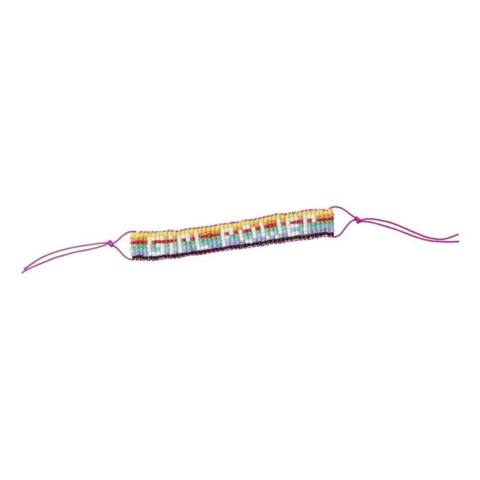 Este kit creativo contiene un telar para tejer de madera que permite crear 13 joyas pop de cuentas de rocalla. El estuche está compuesto por 10 tubos de 500 cuentas de rocalla de diferentes colores, hilo de algodón blanco, un telar para tejer, 2 agujas y 2 hilos de jade de color. La variedad de cuentas y de los diversos modelos presentes en el folleto de instrucciones permite crear preciosas pulseras de la amistad, para regalar o guardar. La confección de una joya requiere aproximadamente 2 horas. Esta actividad desarrolla la creatividad y la destreza.