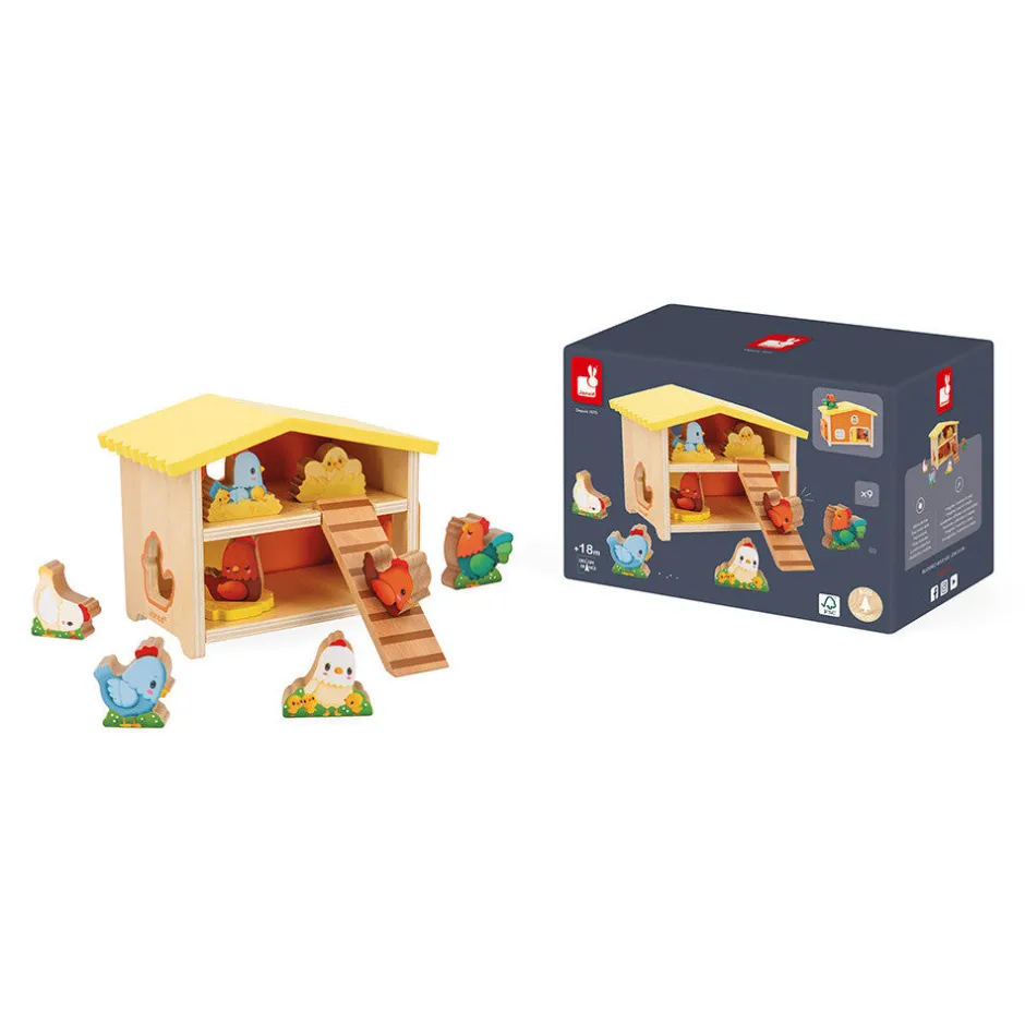 ¡Se oye el canto del gallo a lo lejos! Amanece en la granja y el bebé, a partir de 18 meses, podrá empezar el día disfrutando de su gallinero de madera. Este juguete de estímulo con forma de casita lleva al pequeño al corazón de la granja gracias a los 9 accesorios incluidos. Este gallinero de juguete es ideal para estimular la imaginación y también la motricidad fina, ¡porque está lleno de sorpresas!