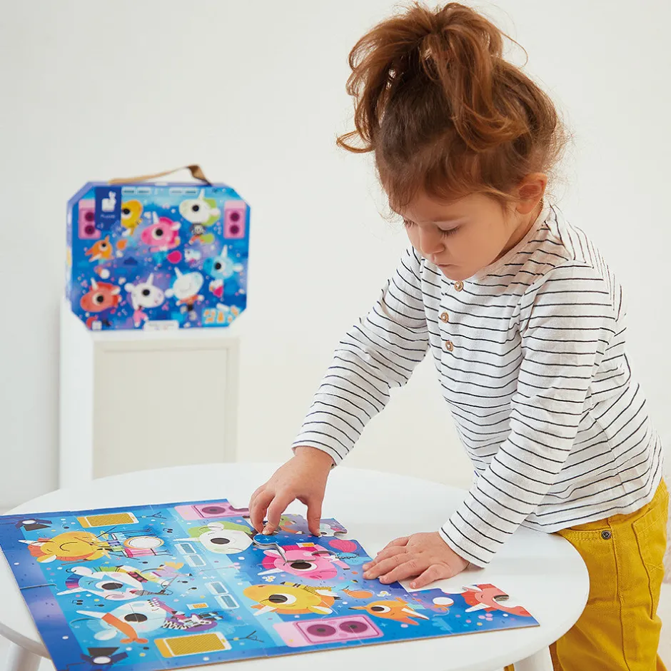 ¡Prepárate para seguir el ritmo con la cabeza! ¡Este puzle de 24 piezas te invita a un fabuloso concierto de rock a cargo de un grupo de unicornios! Los niños a partir de 3 años están listos para sumergirse en un universo musical y mágico.