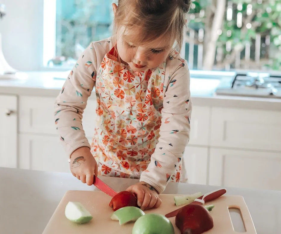 Una forma divertida y sana para que los padres enseñen a sus hijos una de las destrezas más importantes de la vida; cocinar. A los niños les encanta cocinar, déjalos que sean ellos los que corten las frutas y verduras .