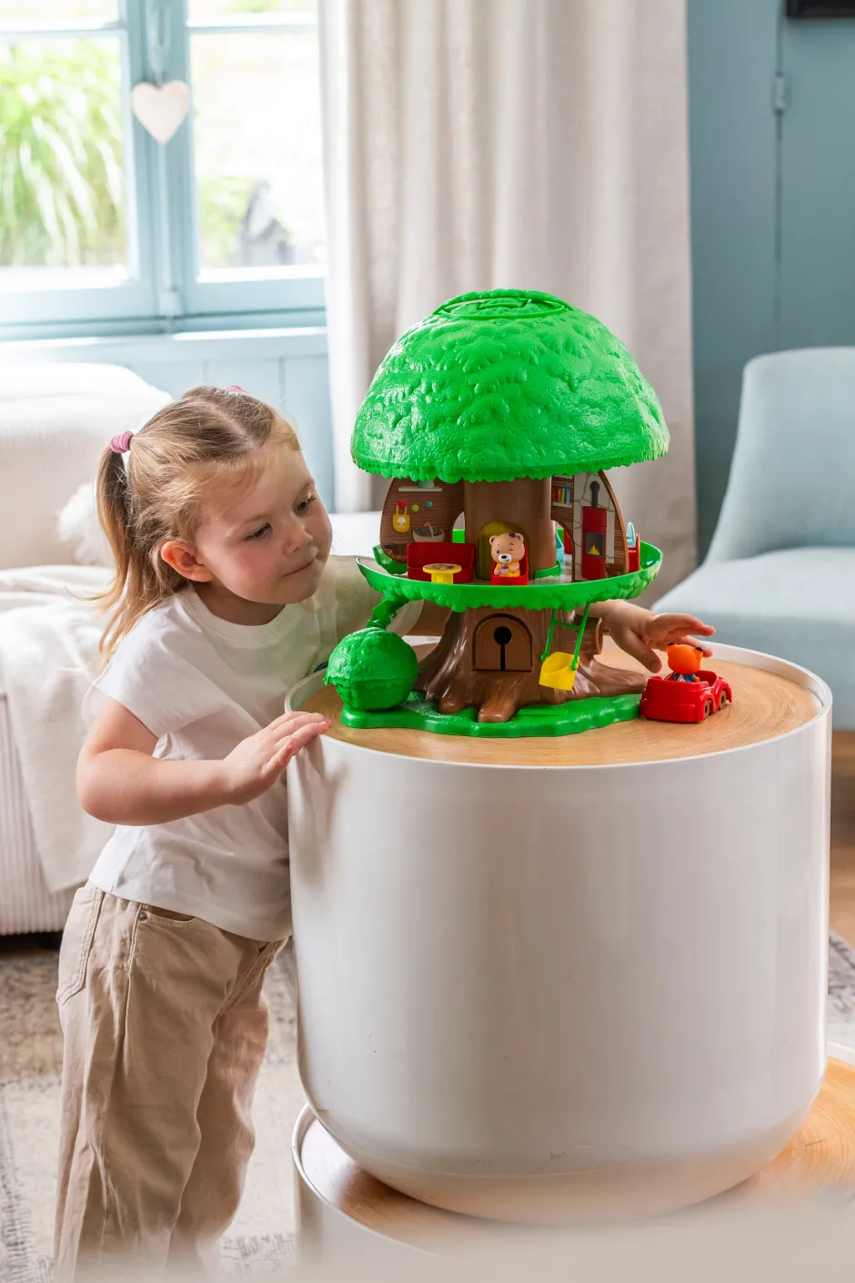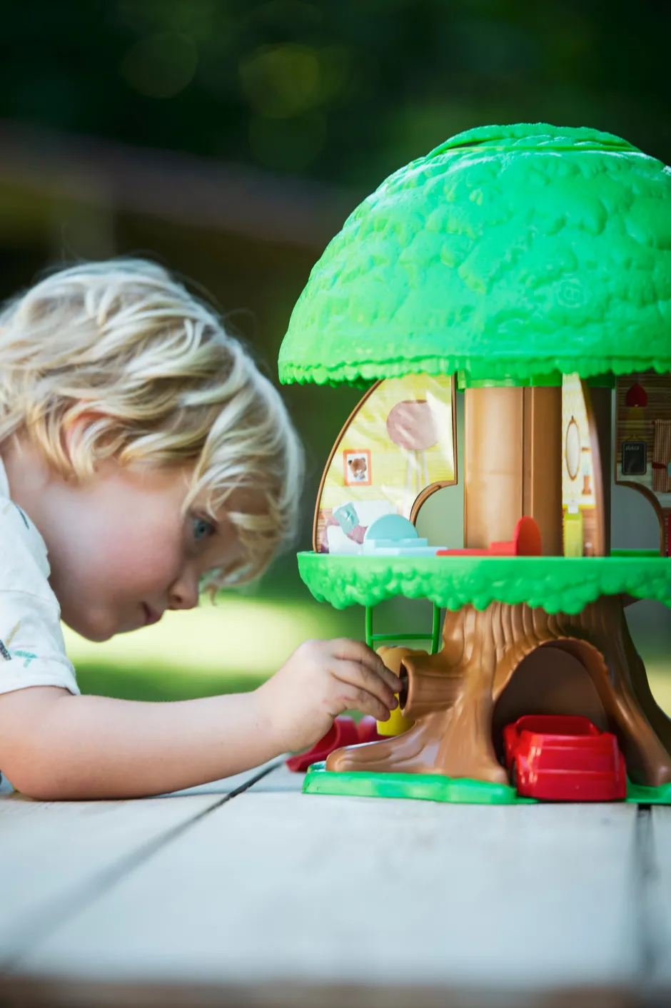 ¡Muchas actividades por descubrir, para representar a los personajes del bosque mágico: una manivela para subir y bajar el ascensor, un arbusto con un espacio de descanso oculto en su interior… Todo para crear muchas historias y jugar juntos!