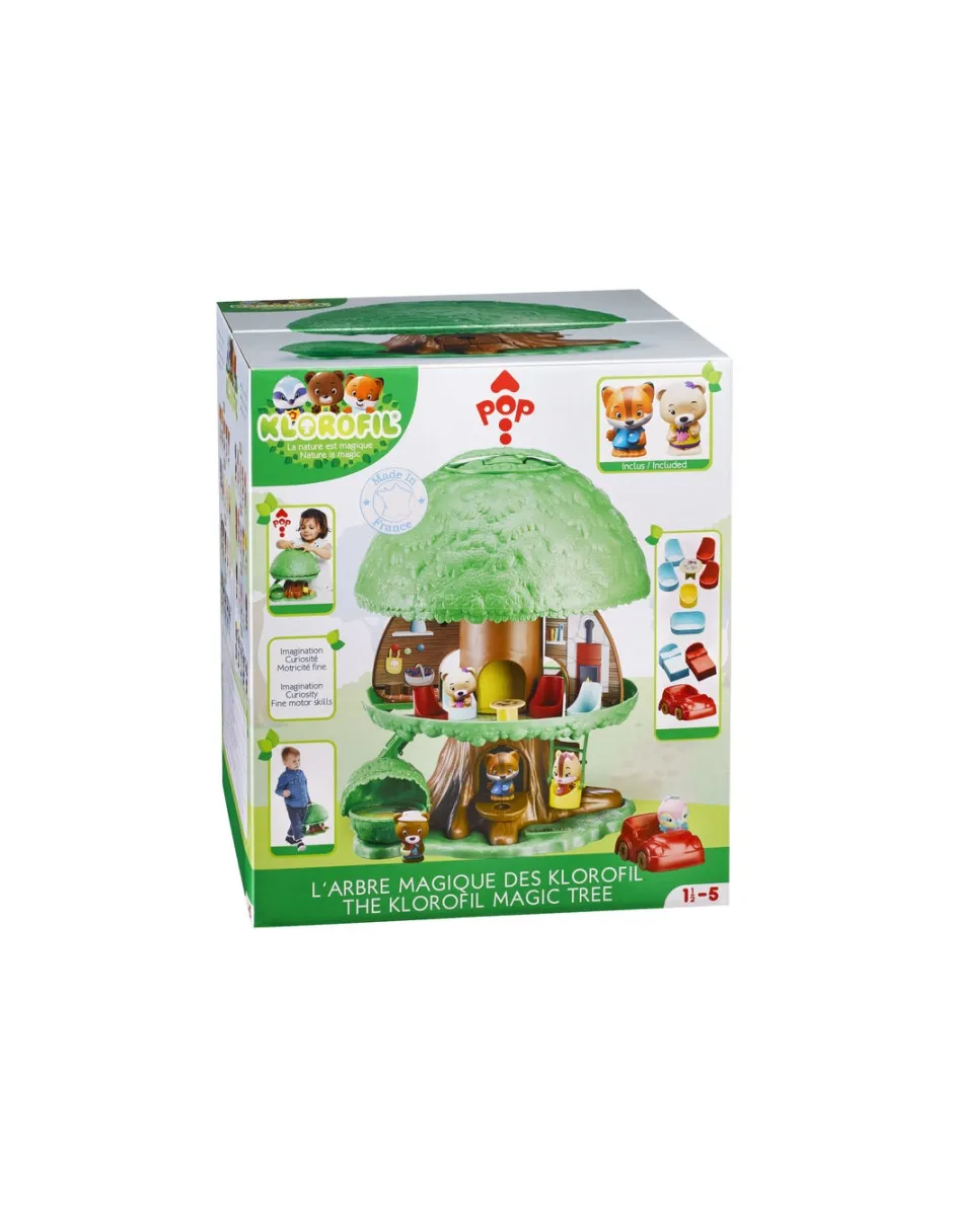¡Bienvenidos al maravilloso mundo del Árbol Mágico Klorofil! ¡Pop! Con tan solo presionar la copa del árbol, los más pequeños descubrirán los secretos mejor guardados de este mágico lugar. Este encantador árbol desvela la gran casa de la familia Klorofil.