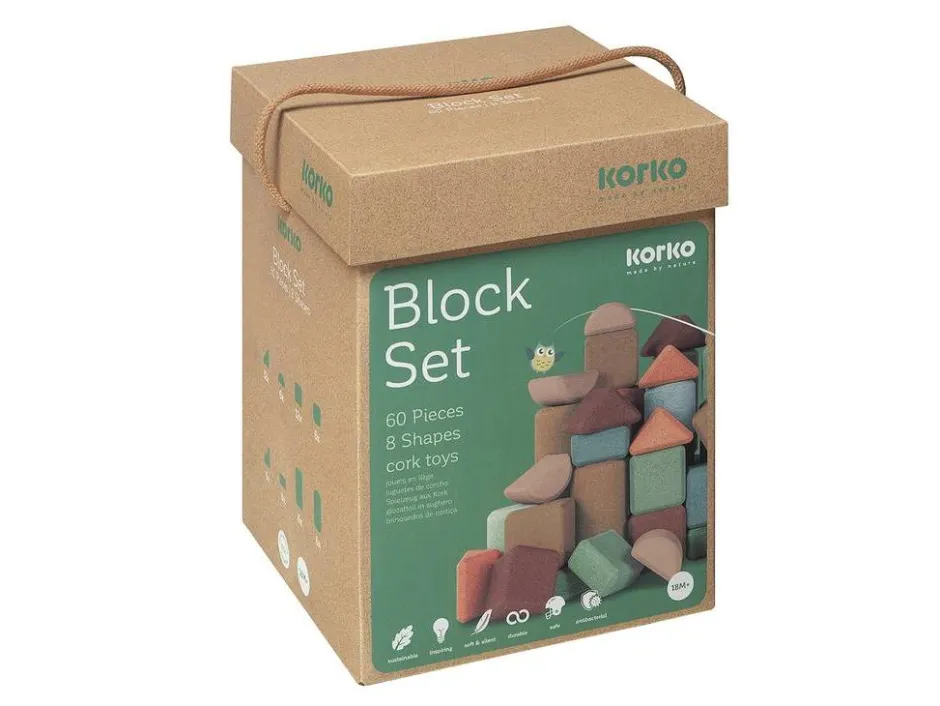 Los bloques de construcción son un juguete muy útil desde el punto de vista pedagógico. Jugando con los bloques de construcción de corcho, los más pequeños aprenden el principio de causa y efecto, fomentan su habilidad motriz fina y dan rienda suelta a su imaginación. Debido a su excepcional naturaleza, pueden apilarlos, ponerlos en fila crear construcciones y torres fantásticamente bien, al igual que hacer que una torre se derrumbe como es debido, pero sin nada de ruido ni peligro a lesionarse. Son perfectamente adecuados para estimular las destrezas, y todo esto además con un tacto muy especial. Los bloques de construcción son idóneos ya para peques a partir de 18 meses.