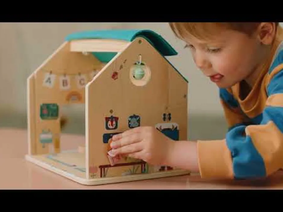 Stella y Joe van al colegio con su mochila de fieltro a cuestas. La señorita Alice, la maestra, está preparando su aula para pasar un agradable día de clase junto con sus alumnos. Esta hermosa escuela de madera incluye todos los elementos para recrear un día de escuela. Estimula tanto la motricidad fina como la imaginación.ales.