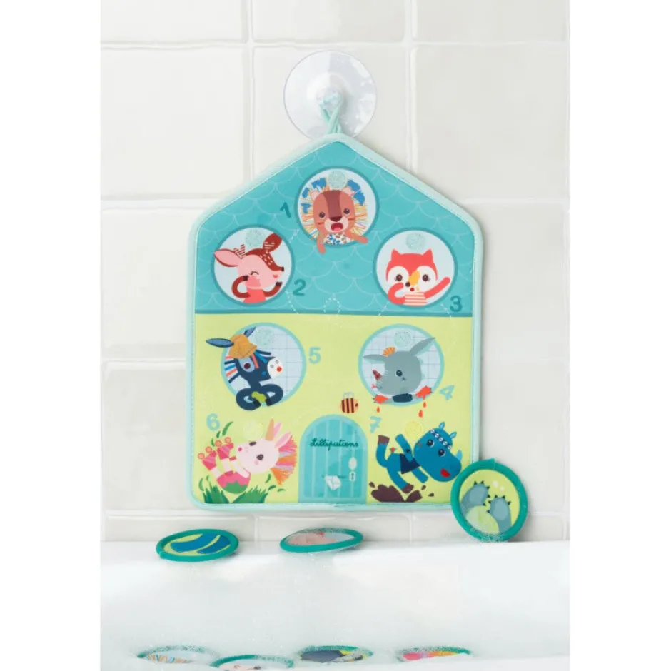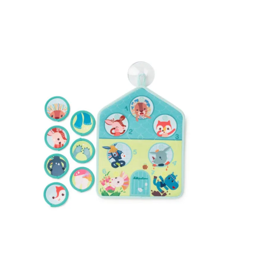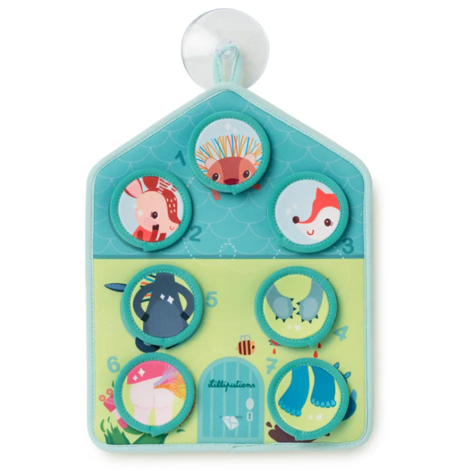 ¡Con este panel, la hora del baño se convierte en un momento de diversión y aprendizaje! Gracias a la ventosa, el panel se adhiere fácilmente a la pared del baño. Después de un día ajetreado, nuestros amigos están un poco sucios, ¡pero no hay problema… es hora del baño! Cada uno tiene una parte específica de su cuerpo que lavar. Pequeñas tarjetas de neopreno que representan partes del cuerpo limpias flotan en el agua del baño. El niño disfrutará buscando la tarjeta que coincida con la parte del cuerpo sucia y colocándola en el lugar correcto en el panel. Incluso puede divertirse lavando su propia parte del cuerpo al mismo tiempo.