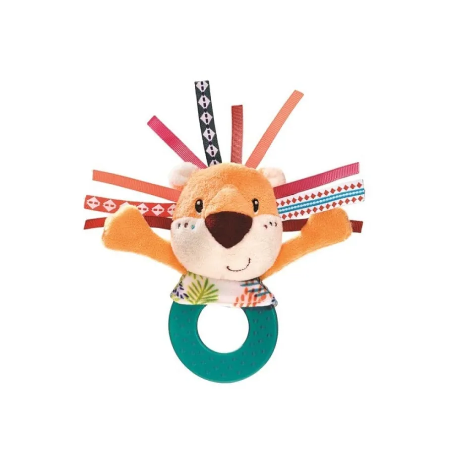 Este sonajero mordedor suave y reconfortante está inspirado en al león Jack. Con un nivel superior de estimulación sensorial, este sonajero emite sutiles sonidos de cascabel y papel.