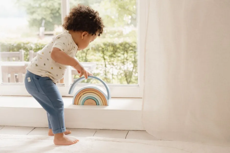 ¡Apila, clasifica y construye! Este arco irís amarillo y verde ofrece infinitas posibilidades creativas más allá de simplemente apilarlo para formar un arcoíris. Construye esculturas, crea túneles para trenes y autos, usa tu imaginación y encontrarás infinitas ideas para jugar con los arcos. Fabricado en madera, este apilador de arcoíris fomenta el juego imaginativo y mejora las habilidades motoras finas. Descubre la versatilidad de este juguete y sorpréndete con las innumerables formas en que se puede disfrutar. Además, agrega un toque encantador a la decoración de cualquier habitación infantil.
