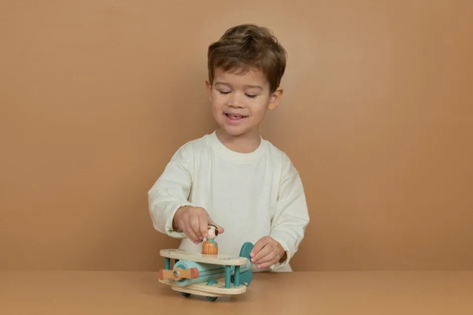 ¡Listos para despegar! Eres el piloto al mando, así que enciende el motor, gira la hélice y emprendamos una aventura. Este avión de juguete está diseñado para juegos interactivos e imaginativos. Las ruedas de suave rodamiento permiten que su pequeño se deslice sin esfuerzo por el suelo, explorando nuevas tierras por descubrir. La figura del piloto extraíble es compatible con otros juegos de la casa de muñecas, como la caravana y el autobús escolar. Deje que la imaginación de su hijo se eleve a nuevas alturas con este hermoso avión de juguete de madera.