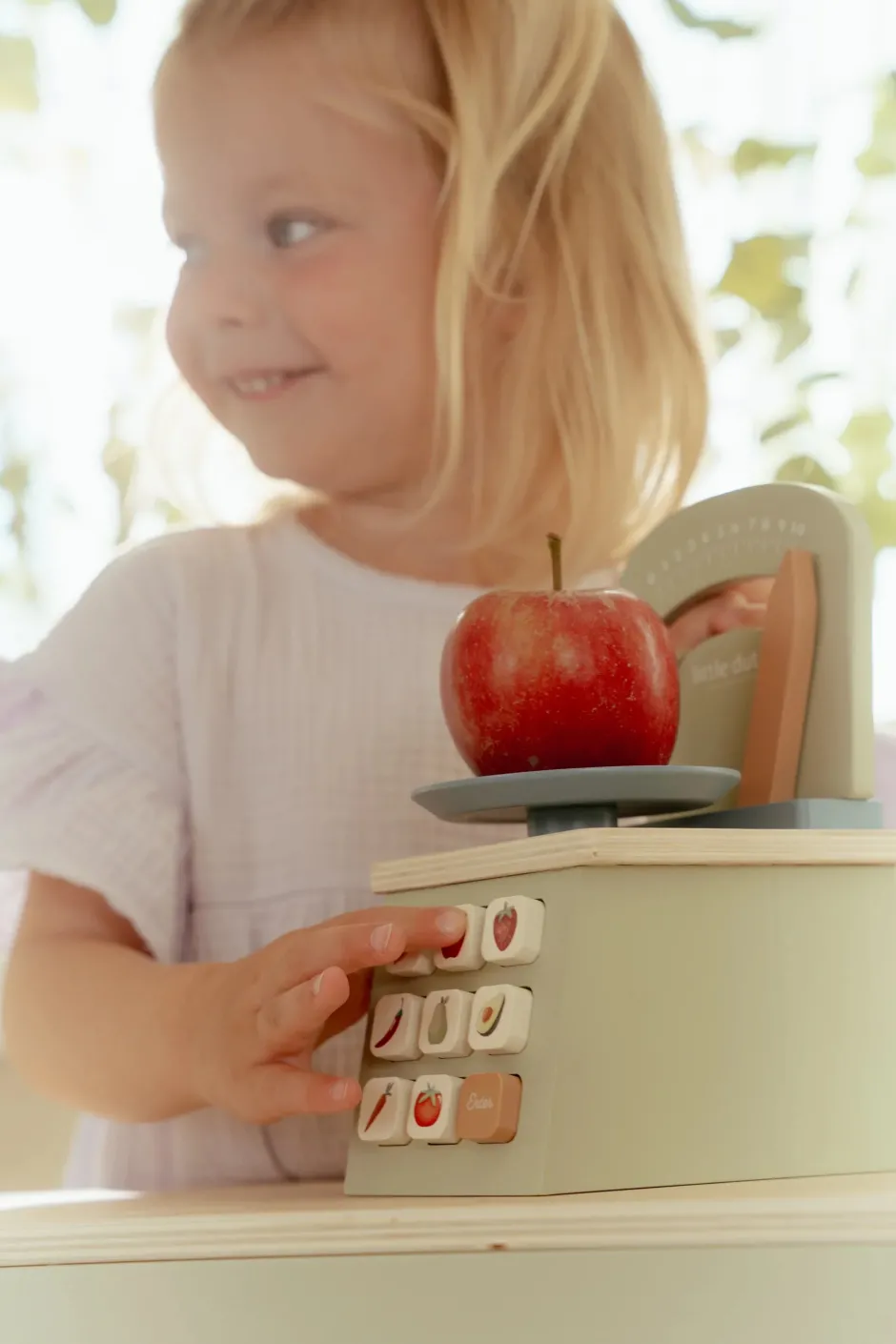 ¡Un ingrediente perfecto para cualquier cocinita! Con esta báscula de madera, los pequeños panaderos y chefs pueden pesar sus ingredientes con precisión. Coloca los productos en la báscula y observa cómo la aguja indica el peso. La báscula tiene botones reales con ilustraciones, lo que hace que jugar en la cocina sea aún más realista. ¡Perfecta para combinar con la cocina y el set de repostería para una diversión sin límites!