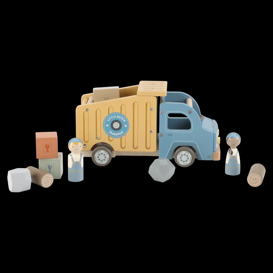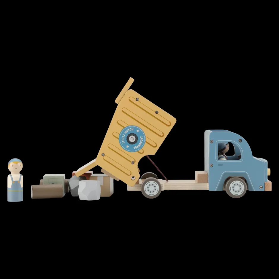 ¡Hora de descargar! Este camión dúmper de madera tiene una plataforma basculante funcional y viene con dos conductores. Incluye diversas cargas, como troncos, piedras y cajas de madera. Conduce hasta la obra, inclina la plataforma y descarga. Este camión de madera combina a la perfección con otros vehículos de construcción. ¿Estás construyendo una nueva ciudad hoy?