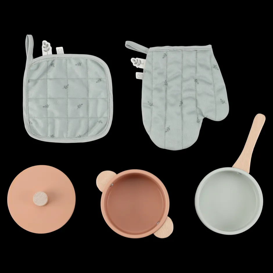 ¡Atención, pequeños chefs! Esta preciosa estación de cocina de madera es perfecta para preparar las comidas más deliciosas. Hornee un pastel o cocine verduras frescas en el horno. El set incluye dos sartenes, una manopla y un paño, y está equipado con botones con ilustraciones para mayor realismo. Combine la cocina con el refrigerador o el set de lavadora y lavavajillas para crear una cocina de juguete completa. ¿Qué hay en el menú de hoy?
