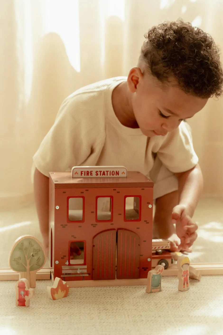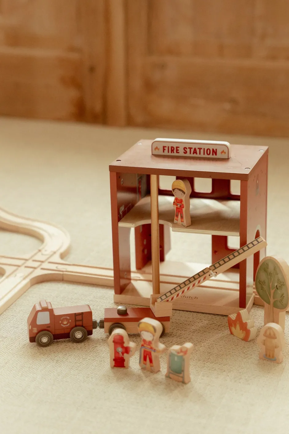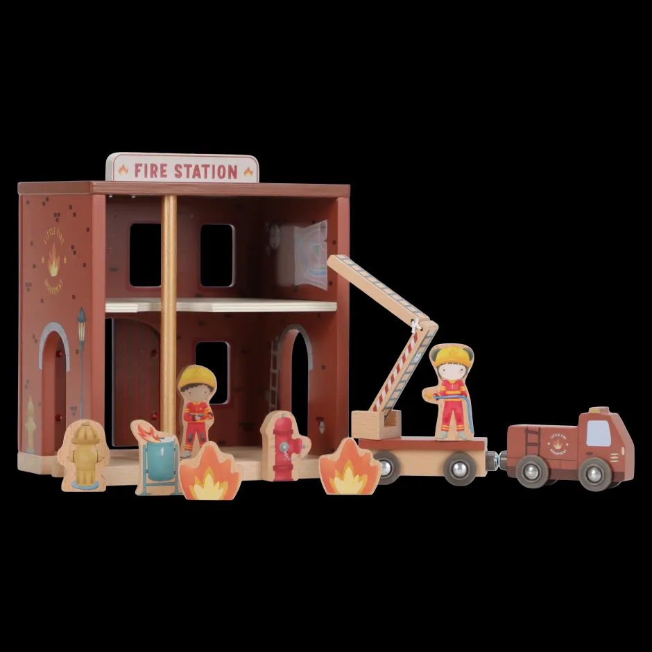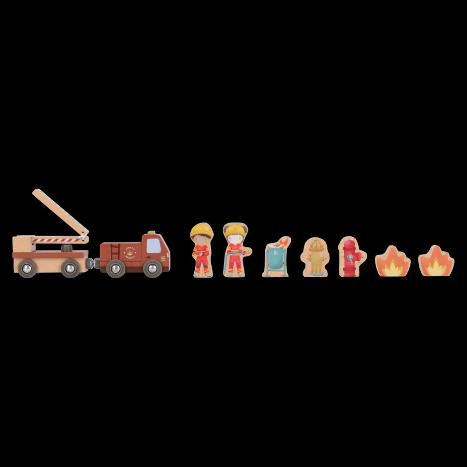 ¡Suena la alarma! Esta estación de bomberos de madera tiene todo lo necesario para una emocionante misión de rescate. Abre las puertas, deslízate por la pértiga y súbete al camión de bomberos. Incluye bomberos, llamas y un cubo de basura en llamas. Las puertas de la estación se abren, lo que permite una salida rápida. Combina este set con el tren de madera XL para vivir aún más aventuras. ¿A quién rescatarás hoy?