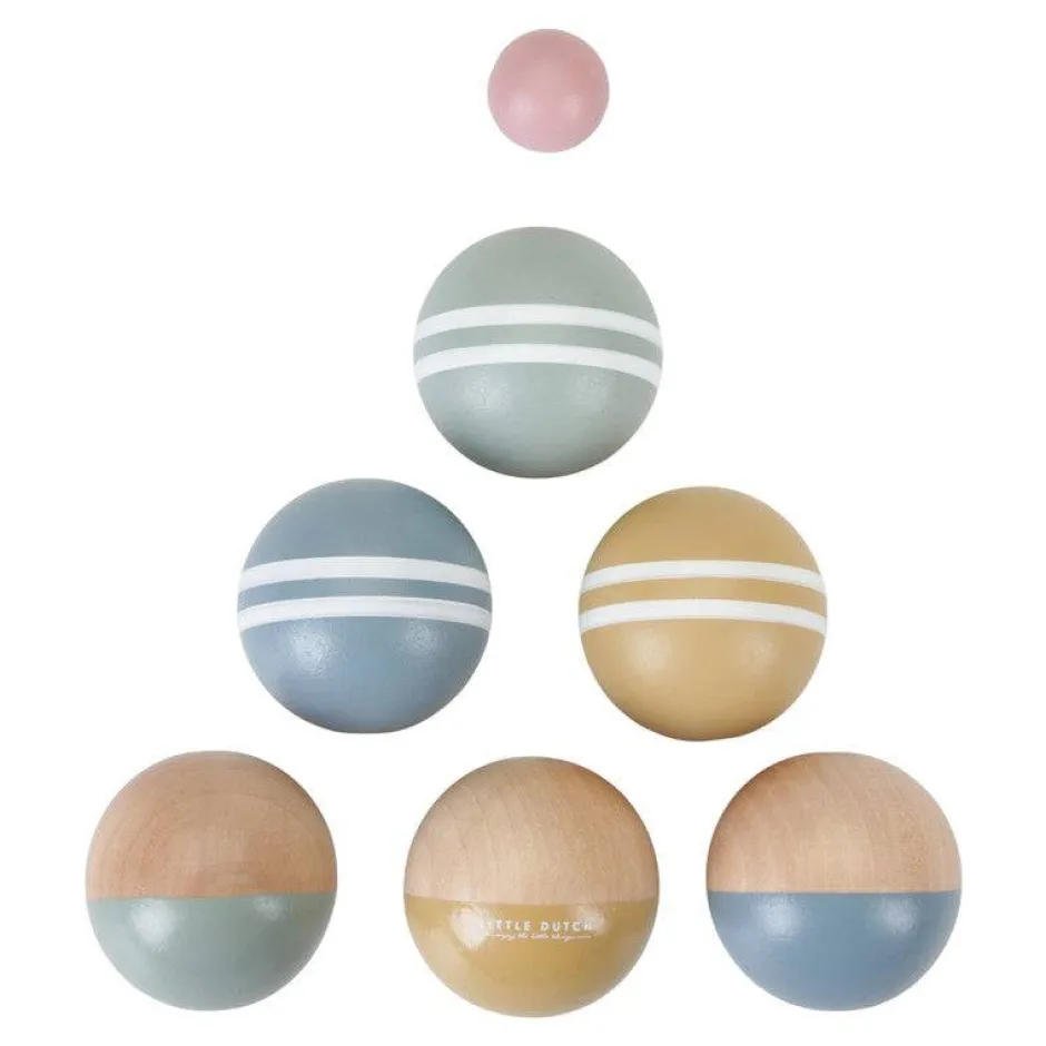 ¡Apunta a Jack! Lanza e intenta acercarte lo más que puedas a la bolita llamada jota para sumar puntos. Encuentra una cancha exterior e invita a tu familia y amigos a jugar a la petanca. Seleccione su color y haga rodar las bolas. Jugar a la petanca estimulará la coordinación mano-ojo mientras se divierte. Este juego de bolas de petanca de madera viene con 6 bolas grandes, 2 bolas pequeñas (jack) y una bolsa de lona para un fácil almacenamiento.
