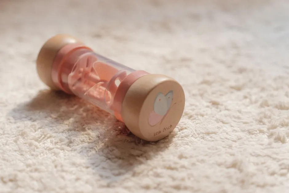 El sonajero de lluvia está diseñado para manos pequeñas y de fácil agarre.
