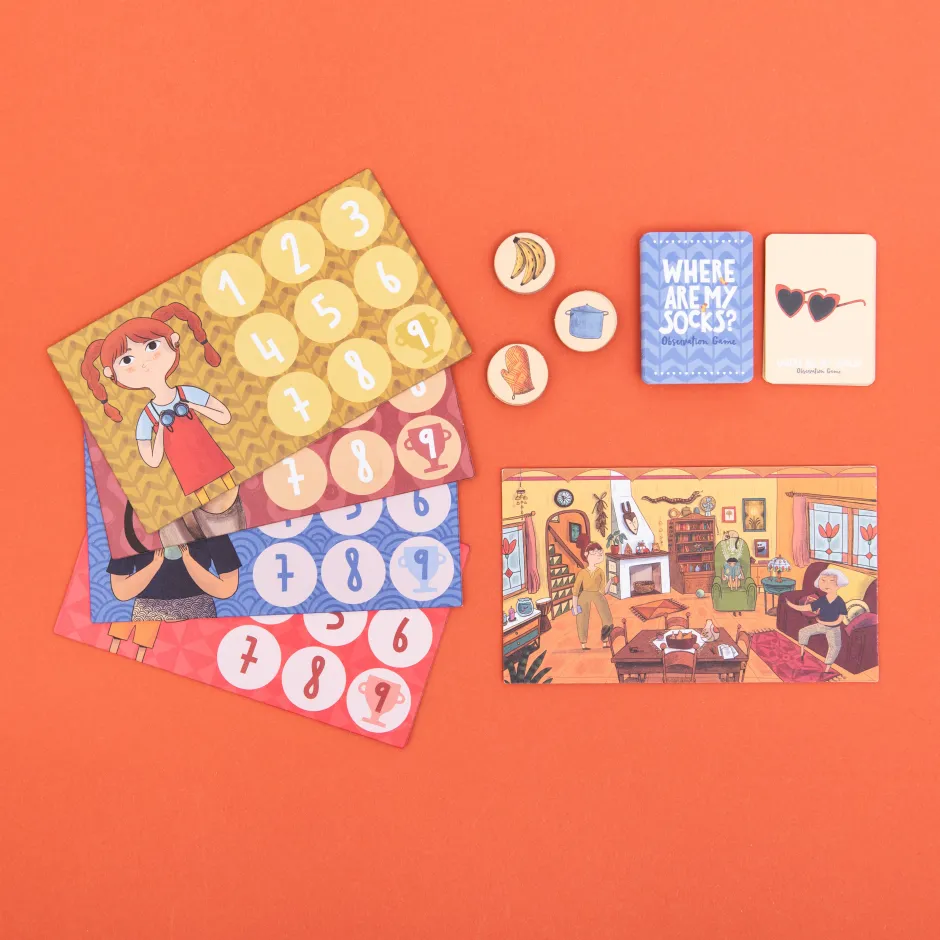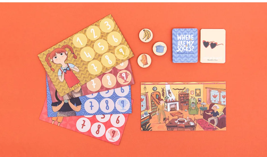 Todos los jugadores a la vez buscan el objeto entre las fichas y el más rápido en encontrarlo lo coloca sobre su tablero de personaje. ¡El primero que recoge 9 objetos gana!