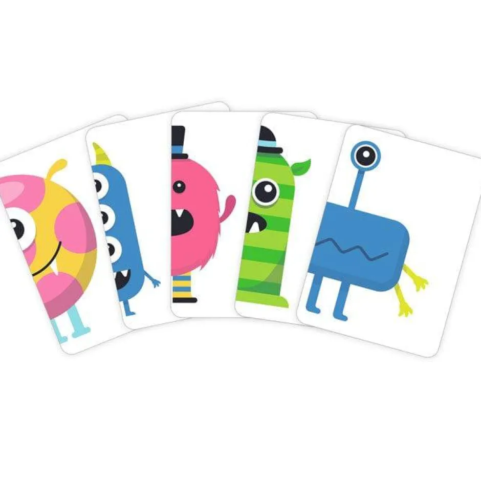 monstruo rojo con alas azules y un ojo? ¿Tienes un monstruo morado con calcetines a rayas y dos ojos? Gana el jugador con más monstruos completos.