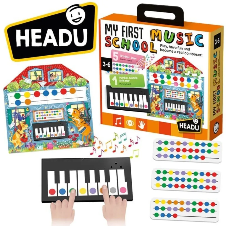 Los niños más pequeños pueden aprender a tocar y componer sus primeras melodías. Con la gran consola-puzzle y el teclado especial, los niños primero tocan melodías prediseñadas y luego pueden inventar otras nuevas utilizando las fichas de notas.